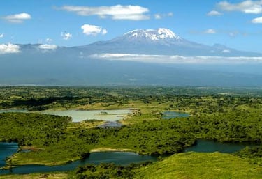 The park offers panoramic views of its landscapes, including the Momela Lakes, the Ngurdoto Crater, and the surrounding areas.