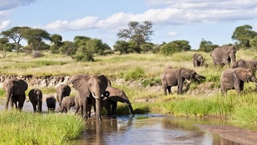 Tarangire National Park, located in northern Tanzania, is known for its stunning landscapes, diverse wildlife, and the impressive herds of elephants that roam its plains.